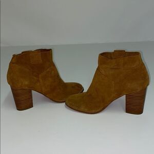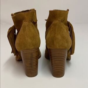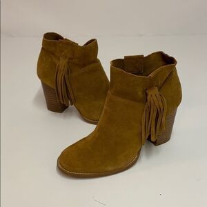 Brand new, only worn A couple of times. Cognac 100% suede western booties with side fringe detail. 3 1/4" stacked block heel