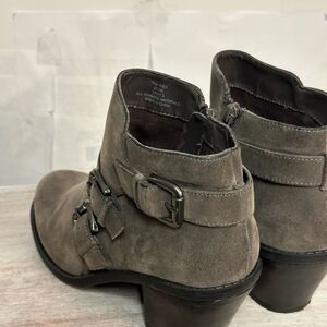 Step into style with these Crown Vintage ankle booties, crafted in a rich tan color. The medium stacked heel and decorative buckle straps add a touch of sophistication, while the side zipper ensures easy wear. Perfect for elevating your casual or semi-dressy outfits.