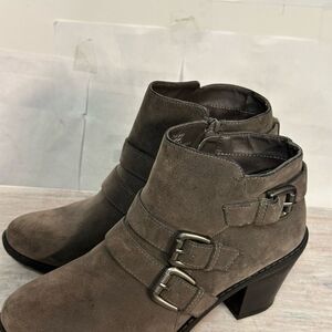 Crown Vintage Tan Ankle Booties with Stacked Heel 7.5 new