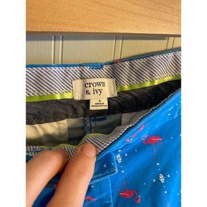 Crown and Ivy Blue Pink Flamingo Cotton Bermuda Shorts Women's 4