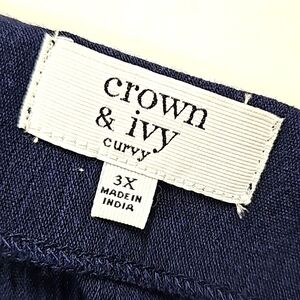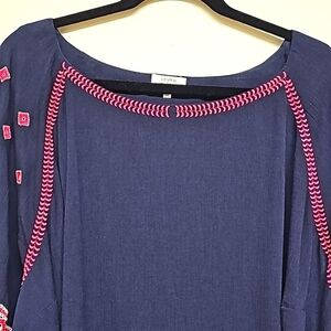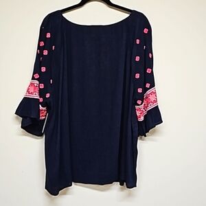 Crown and Ivy Crinkle Navy Blouse with Pink Embroidery, SZ 3X, See Flaw, NWT