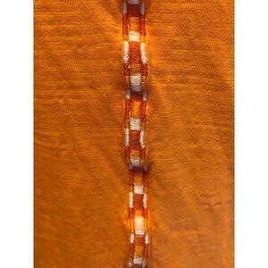 Beautiful orange bohemian style tee with tassle detail at hem. Orange and white emboidary detail down the front center, key hole at the back neck. 100% cotton. Tee is in excellent used condition, no stains or damaged fabric. Size S.