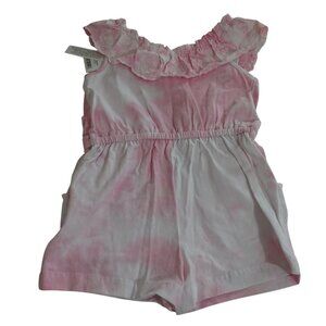 Crown and Ivy Pink Tie Dye Ruffle Romper Shorts Girls Size 4 Summer Pockets