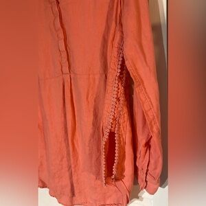 Crown and Ivy Salmon 1/2 Button Up Long Sleeve Tunic, Size L, 100% Linen