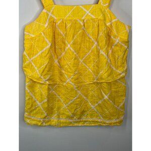 Crown and Ivy Top Womens Medium Tank Shirt Sleeveless Blouse Yellow Ruffles Tier