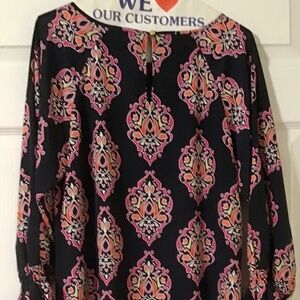 Crown and Ivy Womens Lined Navy/Indian Print Dress 3/4 sleeves - Size 10
