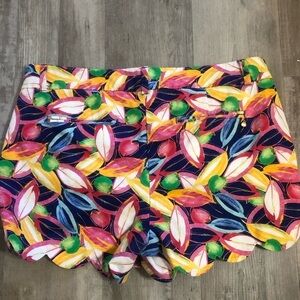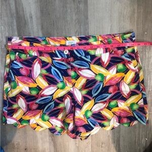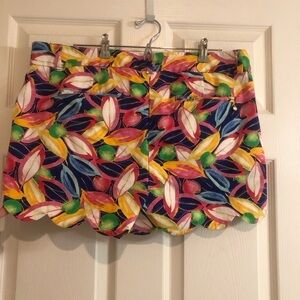 Crown and Ivy size 16 floral shorts. Colorful scalloped hem shorts. Slight stretch with front zip fly, 4 pockets, and slightly wider waistband with belt loops. Made from cotton and spandex these shorts are super comfortable. Pair with a simple white tshirt and sandals and your summer look is complete