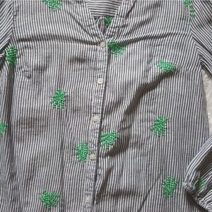 Crown and Ivy blue and white striped with green embroidery button down top Sz XS