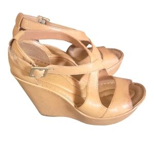 Crown by Born Women's Leather Nude Chelsea Wedge Buckle Closure Sandals Sz 7/38