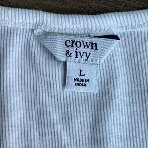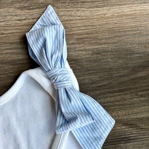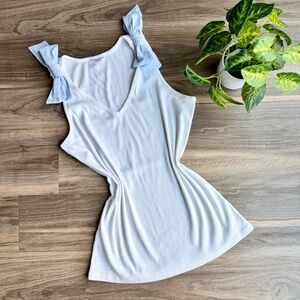 Crown & ivy White Ribbed Tank Top with Blue Bow-Tie Straps at Shoulders Size L