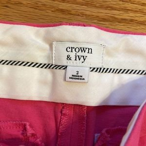 Size 2 Crown & ivy hot pink cropped pants. Straight leg. No front or back pockets. Excellent used condition, wore only 2x, no rips or stains.