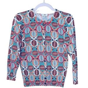Crown & Ivy Geometric Print Cotton Blend Cardigan Size Small