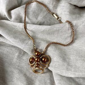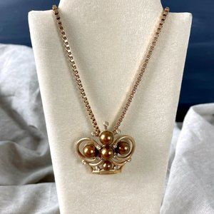 Crown pendant choker necklace with brown pearls - 1950s atomic styling