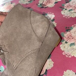 Crown vintage boots wedge suede tan gray taupe leather 6.5