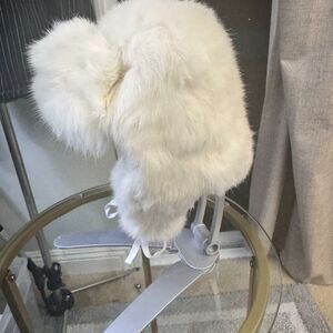 CrownCap Rabbit Fur Trapper Hat Ushanka White Winter Ski Snow Bunny Small S/P