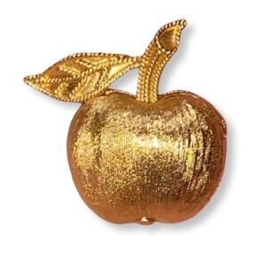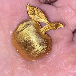 Crown Trifari Vintage Signed Brushed Gold Tone Apple Pin Brooch
