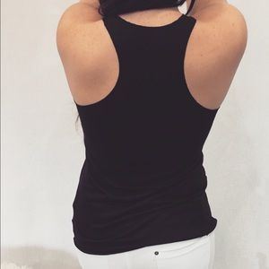 Black tank top.Based off size Small- Length- 25" Bust-20" Waist-13". 65% Rayon 35% Polyester.