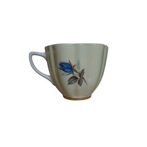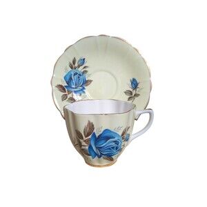 The Crownford Bone China Blue Rose on Light Yellow & White Ribbed Gold Trim is a elegant and collectible cup and saucer set made in England. The floral pattern featuring blue roses on light yellow and white with gold trim adds a touch of sophistication to any dining experience. Crafted from high-quality bone china, this set is sure to be a timeless addition to any kitchen or dining collection.