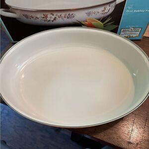 Crowning Fashion Johann Haviland 15” Oval Baking Pan Spring Bouquet Enamel NOS