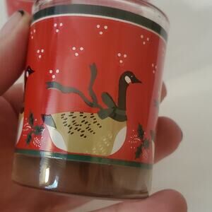 Crowning Touch Glass and Painted Geese and ribbon votive Candle holders
