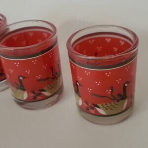 Crowning Touch Glass and Painted Geese and ribbon votive Candle holders Lot of 3