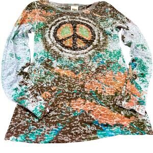 Crowns & Heart Peace Sign Bling Glitter Beaded Festival Long Sleeve Tie Dye LG