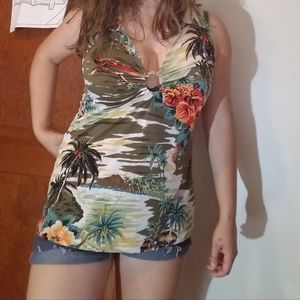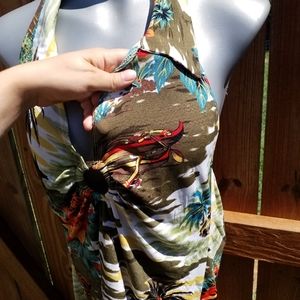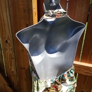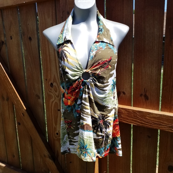 Cruch sexy halter v-neck tropical Floral print low back elastic back detail very stretchy can fit different sizes but tag says 2xl