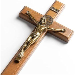 Crucifix Cross Catholic 10.7 Inch Wooden Jesus Christ Wall Cross Stand