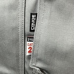Logos/Labels: SafePro chest embroidery; large back S mark; CRUDE FR sleeve/side tags; CAT 2 and 2112 tags