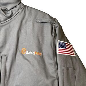 Features: High stand collar; chest zip pocket; two front hand pockets; hook-and-loop cuff tabs; shoulder loops; American flag sleeve patch