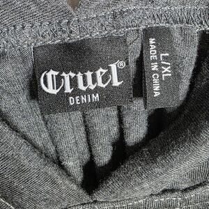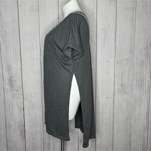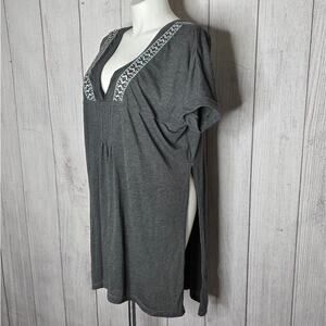 Cruel Denim Charcoal Gray Deep V Side Slit Tunic Top L/XL Southwest Trim Boho