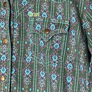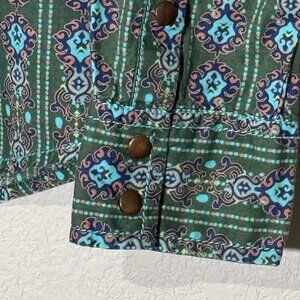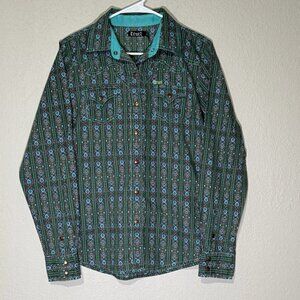 Cruel Denim® Ladies Western Blue & Green Button Down Shirt Large