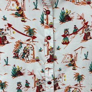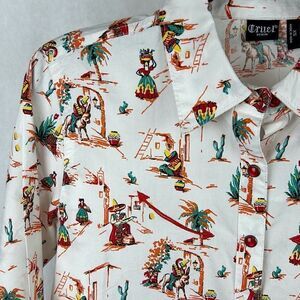 Cruel Denim Snap Button Up Shirt Latin City Print White Sz S CTW7295007