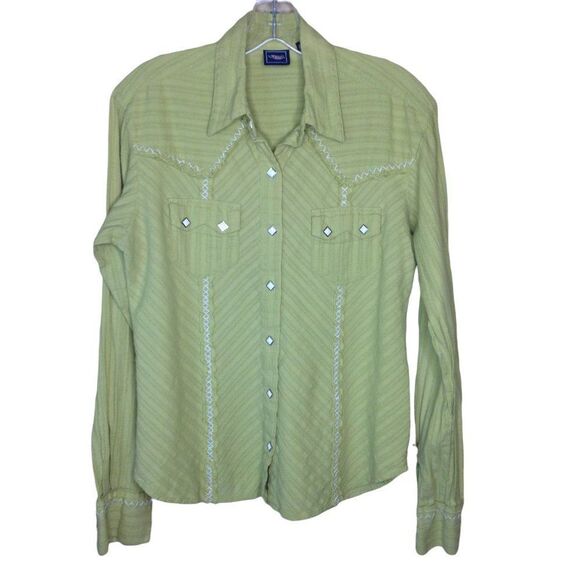 Cruel Girl Long Sleeve Snap Shirt Green Medium