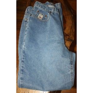 Cruel girl 5-pocket denim jeans, size 15. Medium wash, straight legs. Good pre-loved condition except one small bleach mark and one leg hem is freyed. See pictures.