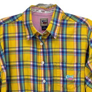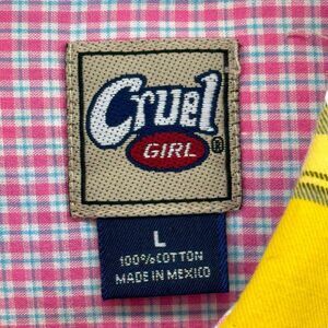 Cruel Girl Shirt Button Down Western Yellow Pink Blue Plaid L Long Sleeve Easter