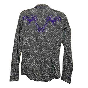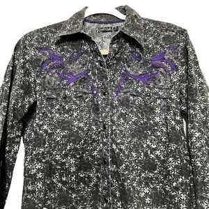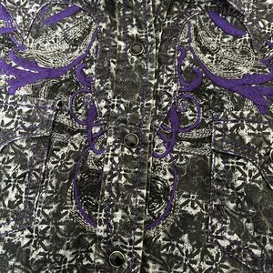 Cruel Girl Western Pearl Snap Shirt Women M Embroidered Black Purple Rodeo Y2K