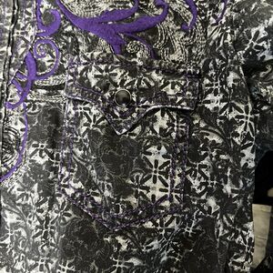 Cruel Girl Western Snap Shirt Black and Purple Embroidery Rodeo Cowgirl Pearl Snap y2k western button down