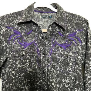 Cruel Girl Purple Tribal Embroidered Western Shirt Snap Front Rodeo Women's Size