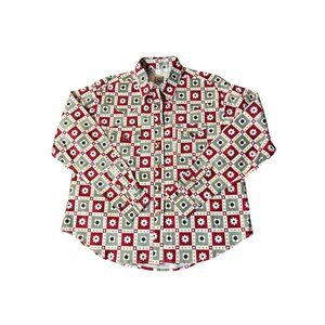 Fun retro-inspired western shirt with stretch comfort fabric and bold pattern. Great for rodeo events, concerts, or casual wear.