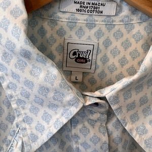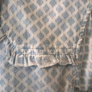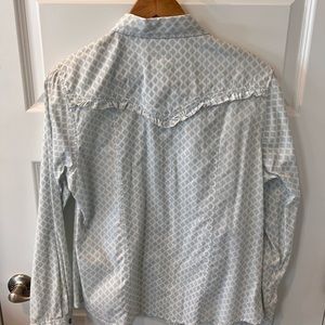 Cruel Girl western style floral shirt with blue pearl snap buttons and ruffle detail. 100% cotton fabric. In excellent pre-owned condition with no holes, stains or snags. Smoke free home.
