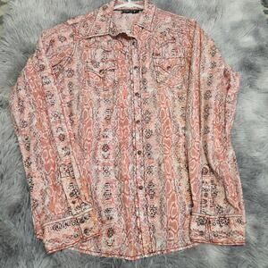Cruel Girl Woman's Pink Button Down Shirt with Snaps and Pockets size XL