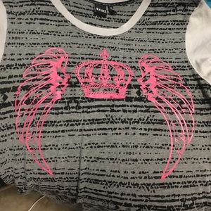 A friend of mine gave this to me and it's too big for me. Super cute! XL, black and grey, with a pink cross and wings in front. No damage done.