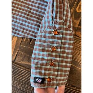 Cruel Retro Denim Festival Western Cowgirl Pearl Snap Shirt Women Medium Aztec