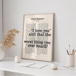 New. TSwift Cruel Summer lyrics print. 8x10”. This listing is for the print alone, unframed. Bundle to get a discount. *Reasonable* offers welcome.