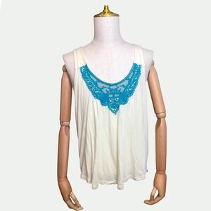 Cruel Tank Top XL Sleeveless Lace Embroidery Summer Flowy Yellow