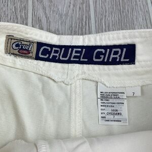 Cruel Girl. Casual Flat Front Khaki shorts. Junior size 7. Side split hems. Slip pockets. Flat back. See pics for waist, rise and inseam. Small mark in pic 6 that I'm sure will wash out. Excellent preowned condition otherwise.