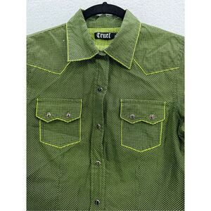 Cruel Womens Green Western Long Sleeve Polka Dot Snap Button Up Shirt Size Small