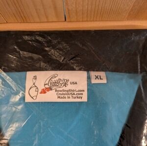 Stylish blue and black bowling shirt with a classic design. Perfect for casual outings.