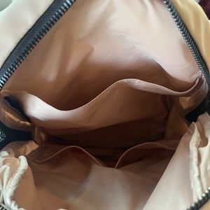 Not available in US. Diluted pink almost peach/salmon color with black straps.